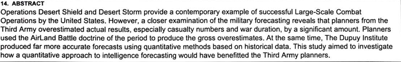 I have only read parts of it, but what I saw looked very good. I just remembered how Robert Leonhard once wrote that since Dupuy made gross exaggerations on UN Coalition losses in the Gulf War, nothing had been hard of humor his model (or something along those lines). I don’t remember where or when he wrote that, but probably 25-30 years ago. I just shook my head when I read Leonhards statement, but he has written other dubious things as well. Good to see a more sober and accurate analysis from Major Anderson.